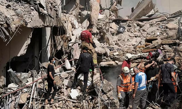 The airstrike on the crowded Qaim street knocked out an eight-story building that had 16 apartments and damaged another one adjacent to it. The missiles destroyed the building and cut through the basement where the meeting of Hezbollah officials was being held, according to an Associated Press journalist at the scene.