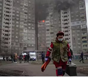 A high-rise building in Kiev's Holosiivskyi district was hit and caught on fire, leaving several people dead and dozens injured.