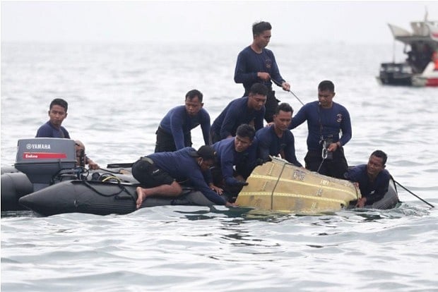 Indonesian navy divers were searching through-plane debris and seabed mud on Tuesday looking for the black boxes of a Sriwijaya Air jet that nosedived into the Java Sea over the weekend with 62 people aboard.