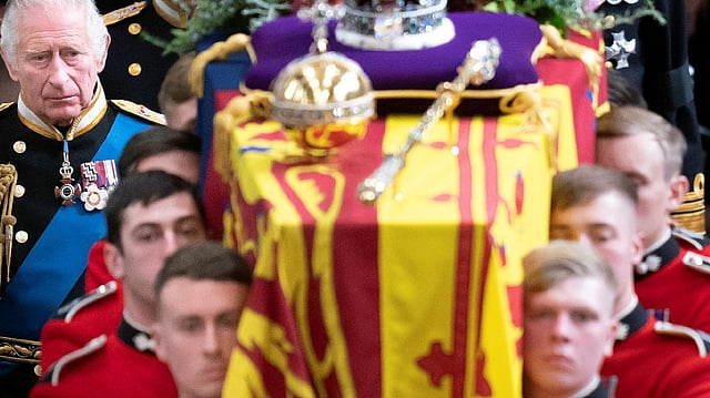 This, the palace said, is to create symmetry with the three Instruments of State that have been removed. The Camp Colour and the broken wand are both to be buried in the coffin.