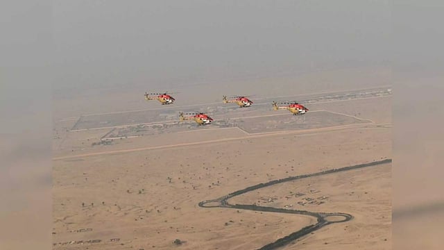 The team, flying four HAL Dhruv helicopters, performed a variety of manoeuvres, including loops, rolls, and inverted flight. They also formed intricate formations and displayed their skills at low-level flying. The Sarang team is one of the world's premier helicopter display teams, and their performance at the Dubai Air Show was met with enthusiastic applause from the crowd.