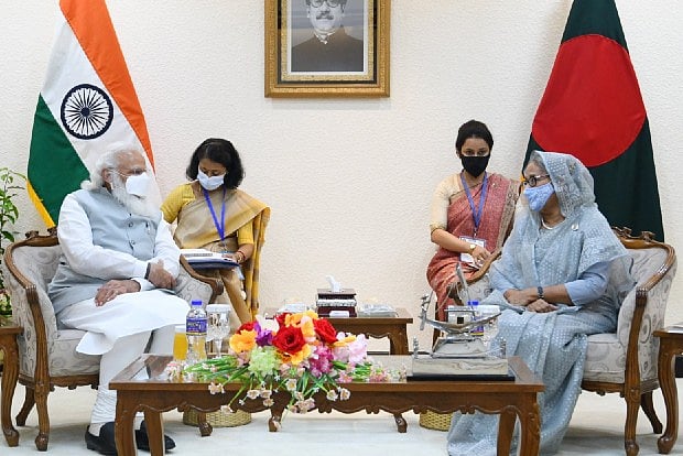 On Saturday evening, Modi met his Bangladeshi counterpart Sheikh Hasina for one-on-one talks at the latter's office in Dhaka after which the two sides signed five MoUs, inaugurated and launched eight projects and made 10 announcements.