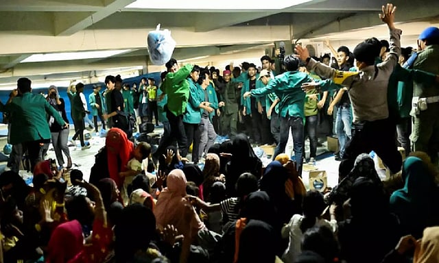 JAKARTA: A large crowd of Indonesian students stormed into a convention camp housing Rohingya refugees from Myanmar on Wednesday demanding their deportation, CNN reported.