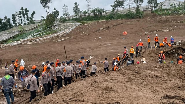 BANDUNG: Nineteen members of Indonesia's elite marine force are among 80 people missing in deep mud after they were swept away or buried by a weekend landslide that tore through a mountainside in West Java province, killing dozens, officials said on Monday.