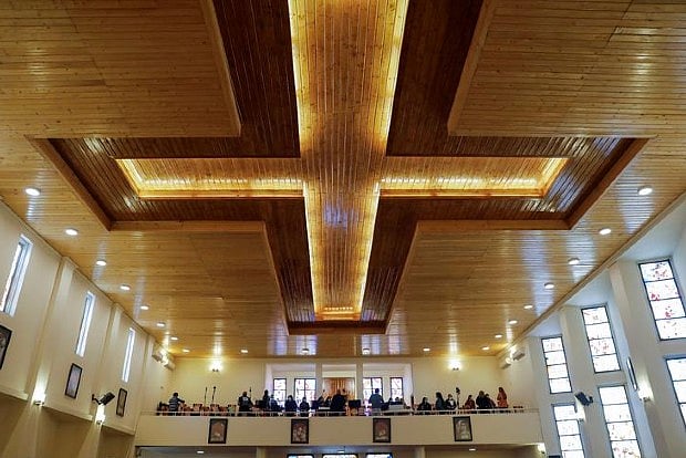 Some wiped the stone floor, stopping only to dance to Christian songs that resonated through the cavernous grey-stone edifice, still virtually empty since it was restored.