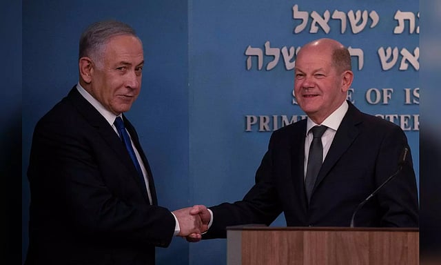 TEL AVIV: Israel Prime Minister Benjamin Netanyahu met with the visiting German Chancellor Olaf Scholz on Sunday at the Prime Minister's Office in Jerusalem.