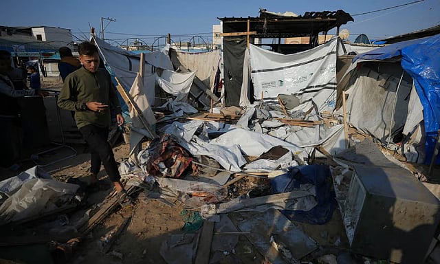 One strike late Monday hit a makeshift cafeteria used by displaced people in Muwasi, the centre of the so-called humanitarian zone. At least 11 people were killed, including two children, according to officials at Nasser Hospital, where the casualties were taken.