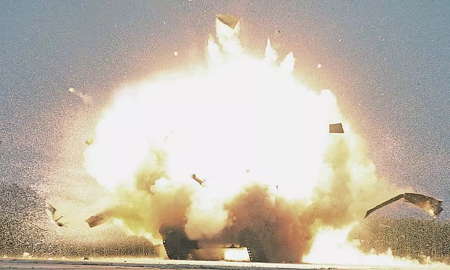 Kim has been flaunting his growing military capabilities amid tensions with Washington and Seoul. North Korean photos of the test showed a white drone with X-shaped tails and wings supposedly crashing into and destroying a target resembling South Korea's main K-2 battle tank. Most combat drones stand off from targets and fire missiles.