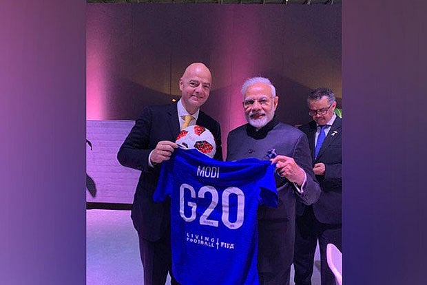Modi, who met Infantino on the sidelines of the G-20 Summit here on Saturday, shared a picture of the blue jersey, with his name on the back, on Twitter.