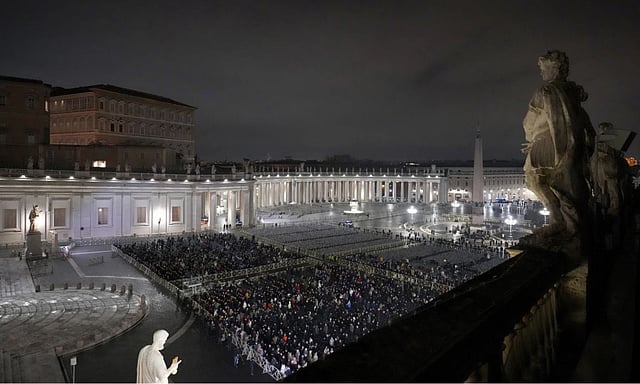 After night fell, thousands of faithful gathered in a rain-soaked St Peter's Square for the first of a nightly ritual recitation of the Rosary. The prayer evoked the 2005 vigils when St John Paul II was dying in the Apostolic Palace, but many of those on hand said they were praying for Francis' recovery.