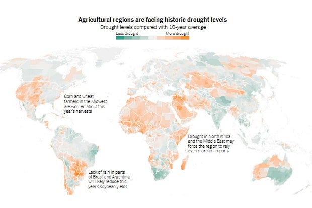 Climate change will compound these risks. In key agricultural regions, drought conditions are worse today than they’ve been in decades.