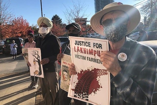 The participants at the Surrey rally demanded action against the father and son and the repeal of the farm laws.
