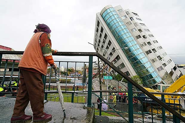 A 6.4-magnitude quake hit the popular eastern tourist city of Hualien late Tuesday, leaving a handful of buildings badly damaged - some of them leaning at terrifying angles as well as roads torn up and hundreds sheltering in local schools and a stadium.