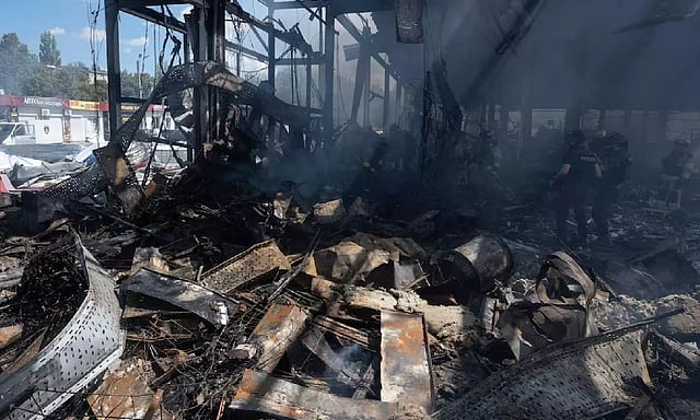 Meanwhile, a Russian plane-launched missile slammed into a Ukrainian shopping mall in the middle of the day, killing at least 10 people and wounding 35 others, authorities said.