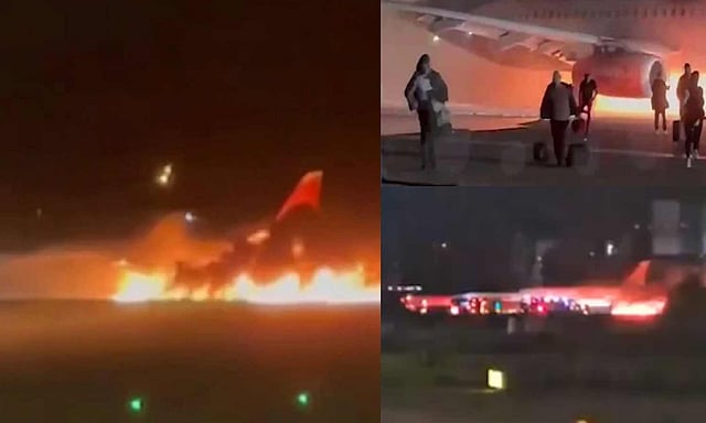 ANKARA: The engine of a Russian plane with 95 people on board caught fire after landing at Antalya airport in southern Turkey, Turkey's transportation ministry said. All passengers and crew were safely evacuated.