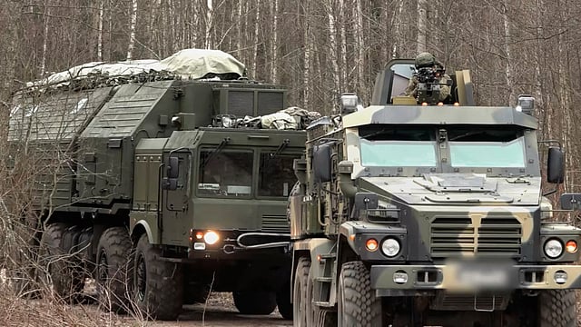 The ministry released a video showing combat vehicles that are part of the mobile intermediate range ballistic missile system driving across a forest as part of combat training.