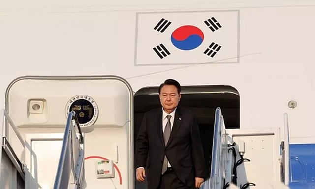 WASHINGTON: South Korean President Yoon Suk Yeol has arrived in Washington to attend a trilateral summit on Friday with his US counterpart Joe Biden and Japanese Prime Minister Fumio Kishida on ways to enhance security cooperation in the face of North Korea's nuclear threat.
