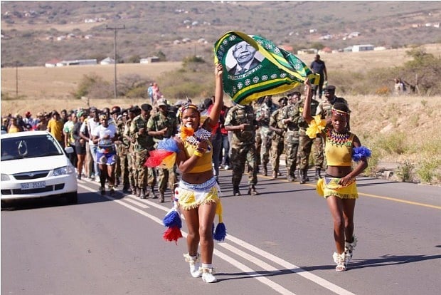 At his hometown of Nkandla, Zuma, who did not speak to his supporters, wore a black and gold tropical shirt as he walked through the crowd, but no mask. He was guarded by men dressed as traditional warriors from his Zulu nation, wearing leopard skins and holding spears with oval ox-hide shields.