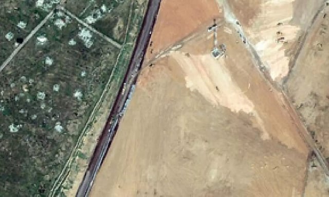 The satellite images, taken Thursday by Maxar Technologies, show construction ongoing on the wall, which sits along the Sheikh Zuweid-Rafah Road nearly 3.5 km (2 miles) west of the border with Gaza.
