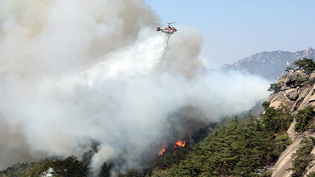 The fire started on Mount Inwang, a popular trekking spot in the central ward of Jongno, shortly before noon Sunday and spread rapidly due to strong wind, temporarily forcing about 120 households to evacuate, according to the Seoul city government. No injuries or deaths have been reported.