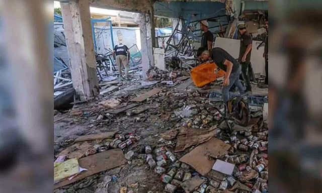 The sources said that an Israeli warplane fired at least one missile at the shelter in the al-Nuseirat refugee camp. The Hamas-run Gaza government media office said that aid workers were among the victims.