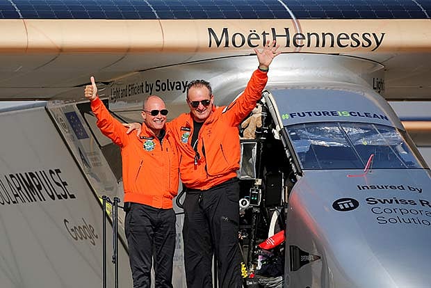 “It was fantastic, everything worked well,” pilot André Borschberg told the control tower, as a live stream from the cockpit was broadcast on Solar Impulse 2’s Facebook page. He emerged from the cockpit and hugged Bertrand Piccard, with whom he has taken turns flying the plane around the world. Solar Impulse is being flown on its 35,400-km (22,000-mile) trip in stages, with Piccard and his Swiss compatriot Borschberg alternating at the controls of the single-seat plane.