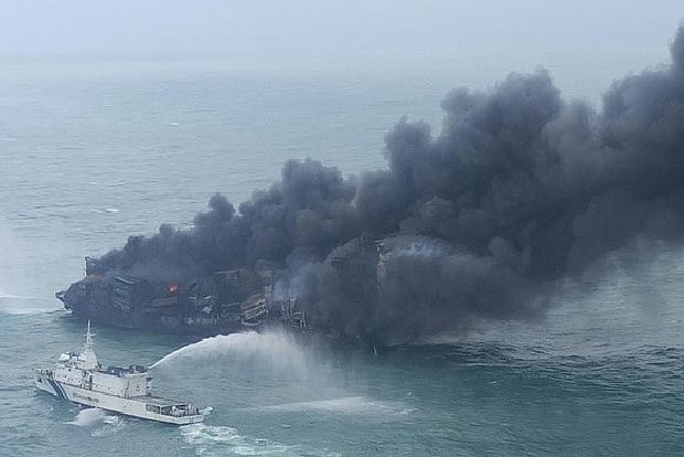 The challenging round-the-clock fire-fighting operation is underway since May 25, 2021, jointly with Sri Lankan authorities.