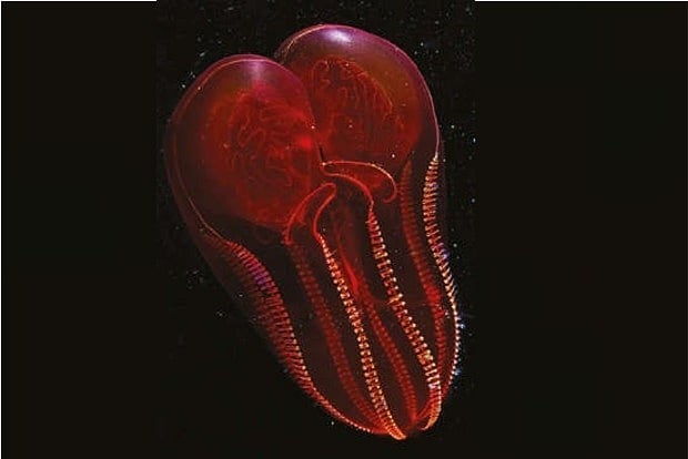 Estimates of its global abundance, they say, will likely soar. The organisms are known as ctenophores. While looking superficially like jellyfish, they have no stingers and none of the usual body pulsations and rhythms that power jellyfish. Instead, what moves them through seawater are pulsating rows of feathery cilia.