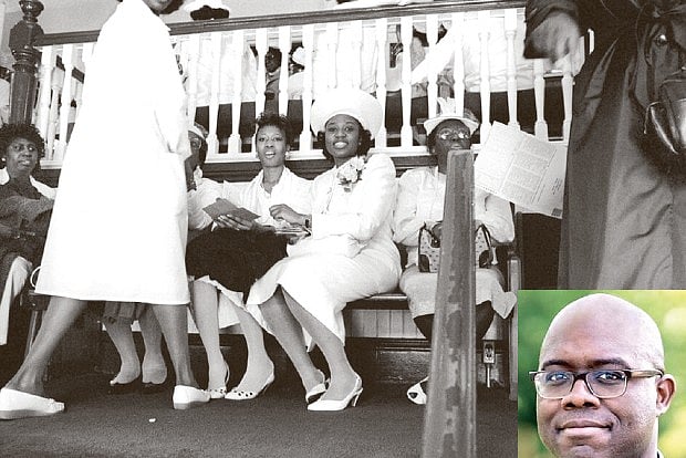 The feeling didn’t last long. During a song, a woman sitting next to me with one of the aforementioned hats got excited. Our tradition called it “catching the Holy Ghost.” In her ecstatic state, she kicked out, hit me in the leg, and ripped a hole in my brand-new pants.