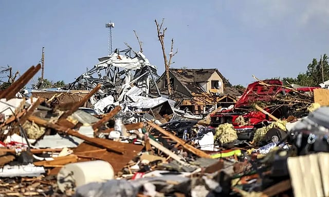 Mobile homes were ripped apart and pickup trucks with shattered windshields were slammed against mounds of rubble in residential areas.