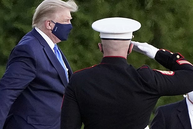Roughly 17 hours after he announced that he had tested positive for the coronavirus, Trump walked slowly from the White House to a waiting helicopter to be taken to Walter Reed National Military Medical Center in Bethesda, Maryland. He wore a mask and business suit, and he did not speak to reporters.