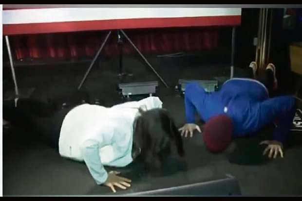 The man asked her: "Former Vice President Biden has randomly challenged people in the audience to a push-up contest even if they're in walkers... Do you think you could take him?"