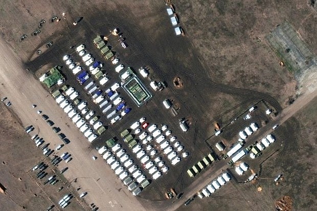 Earlier, commercial satellite images from a U.S. firm showed new Russian military deployments at several sites near the border.