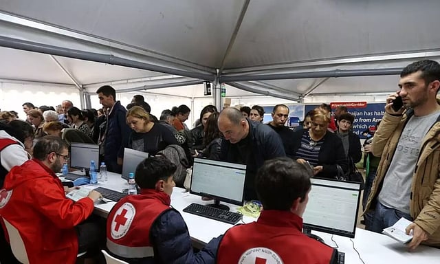 As Armenians rushed to leave the Karabakh capital, known as Stepanakert by Armenia and Khankendi by Azerbaijan, fuel stations were overwhelmed by panic buying.
