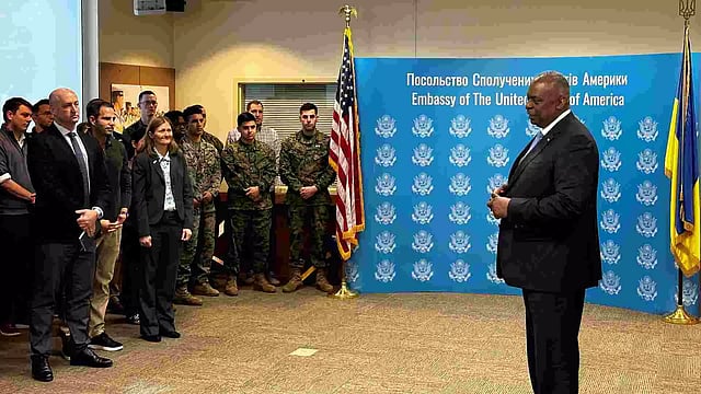 KYIV: U.S. Secretary of Defense Lloyd Austin arrived in Kyiv on Monday for an unannounced visit and expressed American support "for the long haul" as questions swirled over the sustainability of vital Western assistance, with Russia's invasion dragging on. Austin, accompanied by the head of the U.S. military's European Command, was photographed smiling and shaking hands with Ukrainian President Volodymyr Zelenskiy. It marked Austin's first visit to Kyiv since April 2022.