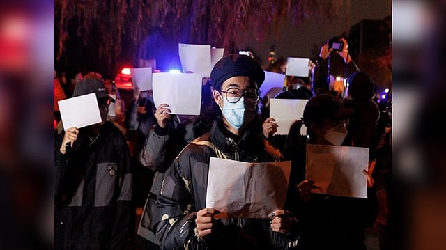 US media reports said blank sheets of paper, held by protestors, have become a symbol of a mass uprising being witnessed against the Communist-ruled strict zero-COVID policy.