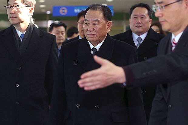 Kim Yong-chol, a key party official handling inter-Korean affairs, arrived at a checkpoint in Paju, south of the inter-Korean border via a land route at 9.53 a.m., heading the eight-member delegation for a three-day trip to South Korea, reports Yonhap News Agency.