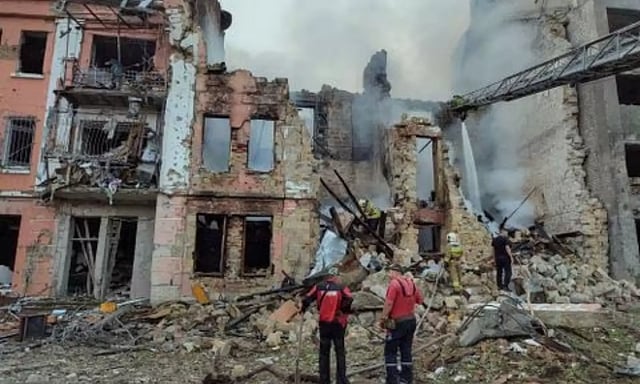 KYIV: Russia struck residential buildings on Thursday in a third straight night of bombardments of Ukrainian ports and issued a new threat against Ukraine-bound vessels that the United States said meant Moscow might attack ships on the high seas.