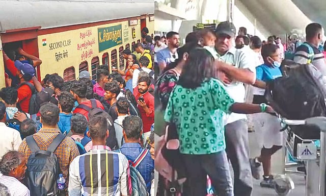 The Tambaram railway station was also flooded with train commuters since thousands of people were moving out of the city to cast their votes in their native villages.