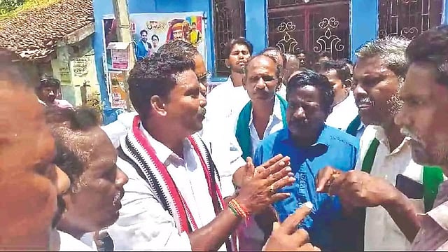 TIRUCHY: The sugarcane farmers from Thiru Arooran Sugar factory who have been protesting for more than 500 days for their various demands including the disbursal of their arrears by the factory, besieged the AIADMK candidate for the Mayiladuthurai Parliamentary Constituency AIADMK candidate for failing to support them. Earlier they had besieged the Congress candidate.