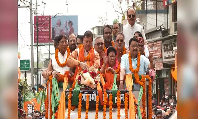 DEHRADUN: Uttarakhand Chief Minister Pushkar Singh Dhami participated in a road show ahead of the nomination of Tehri Lok Sabha candidate Mala Rajyalakshmi Shah in Dehradun on Tuesday.