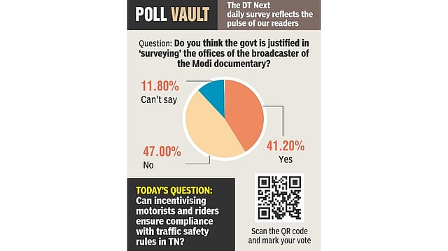 Poll results:.YES - 41.20%.NO - 47.00%.CAN'T SAY- 11.80%.Visit news.dtnext.in to explore our interactive epaper!.Download the DT Next app for more exciting features!.Click here for iOS .Click here for Android