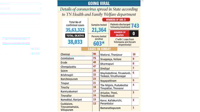 Details of coronavirus spread in State according to TN Health and Family Welfare department..Visit news.dtnext.in to explore our interactive epaper!.Download the DT Next app for more exciting features!.Click here for iOS .Click here for Android