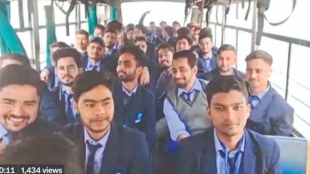 A video of a group of college students in uniform chanting slogans inside a bus has gone viral. It is being claimed that the students raised pro-Pakistan slogans. Many users also alleged that two of these students were arrested.