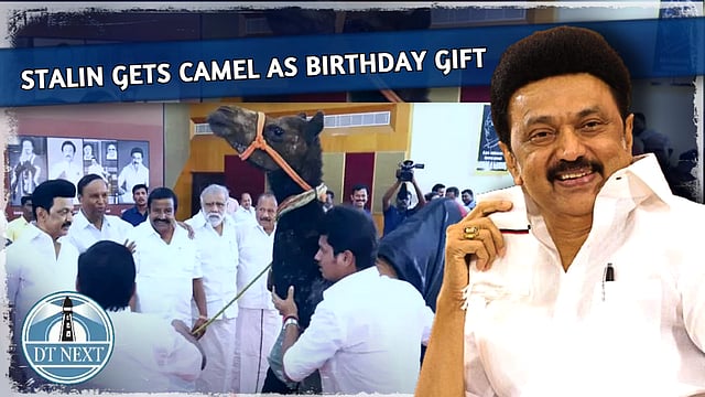 In a special arrangement made by the party for volunteers to meet and greet Chief Minister MK Stalin on his 70th birthday, the DMK chief was gifted a camel by a Tiruvannamalai man. The man identified as Jakirsa had brought a 2-year-old camel to present to the Chief Minister. It is to be noted that earlier he had received gifted Chief Minister goats and cows.