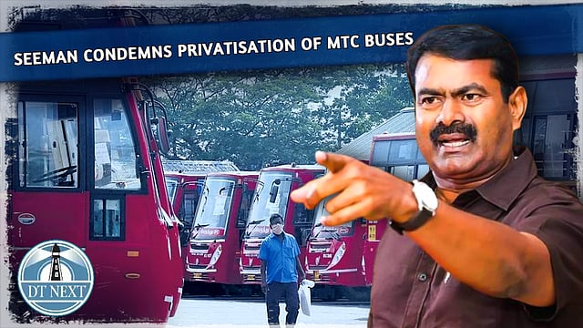 As the Metropolitan Transport Authority (MTC) floats bids to allow private operators to run city buses, Seeman, convenor of Naam Tamizhar Katchi, has alleged that the DMK is following footprints of BJP that is privatising public sector undertakings. In a statement, Seeman said that the government is allowing private entities to hide its corruption and inability. He also condemned the government for such a move. "The State Transport Corporation runs 20,000 buses for the last 50 years providing service to poor persons without considering profits. Buses contribute to economic growth of rural areas," he said in the statement. He added that due to corruption and inability of 50 years of Dravidian rulers, transport corporations are running with Rs. 50,000 crore loss. It also unable to pay its employees. "We opposed the move when the finance minister announced it in the assembly,” he said. He pointed out that BJP government under Modi is privatising banks, insurance, railway and flights. "The DMK government claimed that it opposes BJP's policies but it privatising MTC buses. This is after an announcement of modernising bus stands at several crores. It is confirmed that DMK is the B-Team of BJP through its action. Is privatising government undertakings is called Dravidian Model? Or Aryan Model?" he asked. He urged the State government to drop the plan and take measures to make the transport corporations to make them profitable.