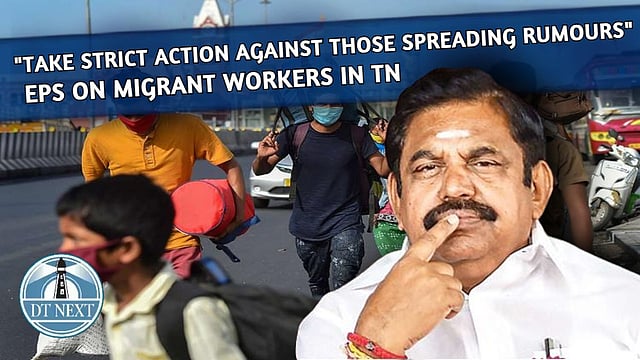 AIADMK interim general secretary Edappadi K Palaniswami on March 05, urged the state government to take legal action against those spreading rumours about the migrant workers. "When the new industries are opened, they require workers. There is no second opinion that our local workers should be given priority. Due to a shortage of local workers, workers from other states are coming here. They should be protected. Only then the industries will grow and the state will develop economically, " he said while addressing a rally to mark the 75th birth anniversary of former chief minister J Jayalalithaa at RK Nagar. He also hit out at the DMK government over the deteriorating law and order situation. He cited the incident of sexual assault on a woman police at a DMK event attended by Kanimozhi.