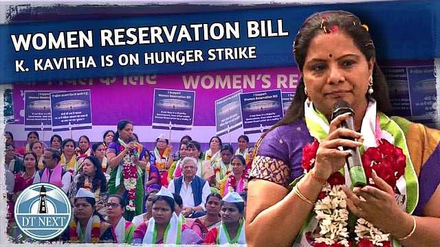 Bharat Rashtra Samithi MLC and Telangana CM K Chandrashekar Rao’s daughter K Kavitha on March 10 launched a hunger strike at Jantar Mantar in the national capital demanding the introduction of the Women’s Reservation Bill in the current Budget session of Parliament. Sitaram Yechury, CPI(M) General Secretary is also present at the protest. The sit-in dharna at Jantar Mantar is being attended by opposition parties and women organisations who have supported the Women’s Reservation Bill from across India. While addressing a gathering, Kavitha said this Bill will help in the development of the nation and requested the central government to introduce the Bill in Parliament.
