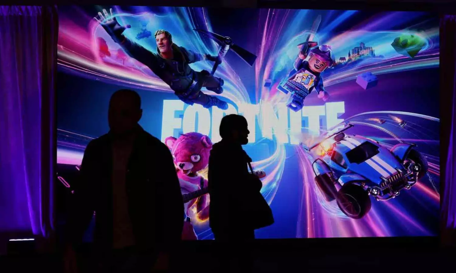 People in silhouette walk by a Fortnite gaming digital monitor during an event in New York City, U.S. (Reuters)