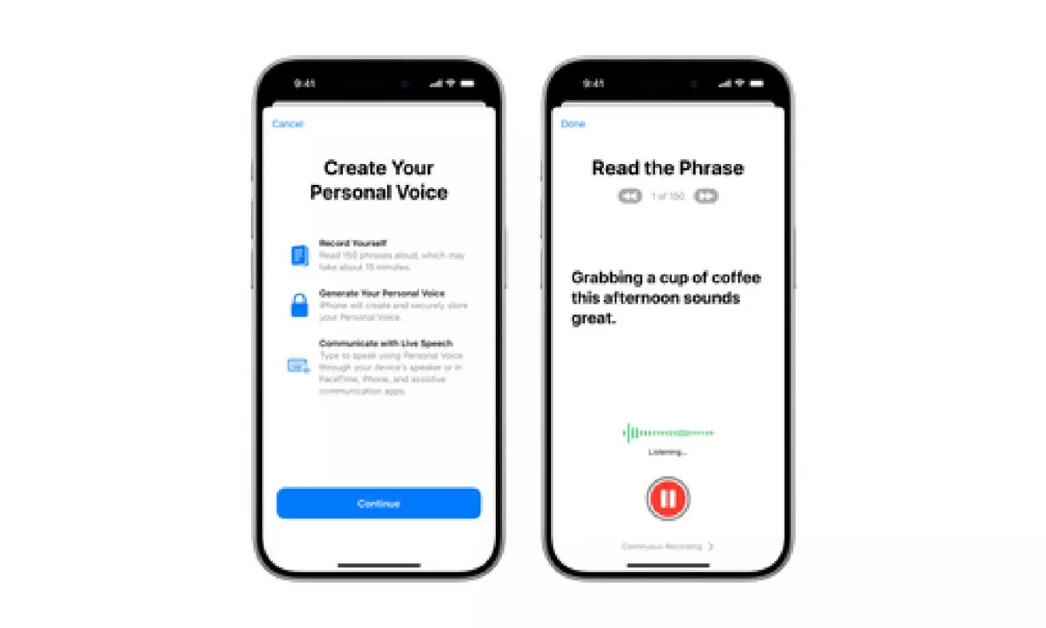 “Personal Voice uses secure on-device machine learning to sample and recreate your own voice, which means if you ever subsequently lose the ability to speak, you can continue to communicate through your iPhone, iPad or Mac (using another new feature called Live Speech) — and still sound like you,” according to Apple.